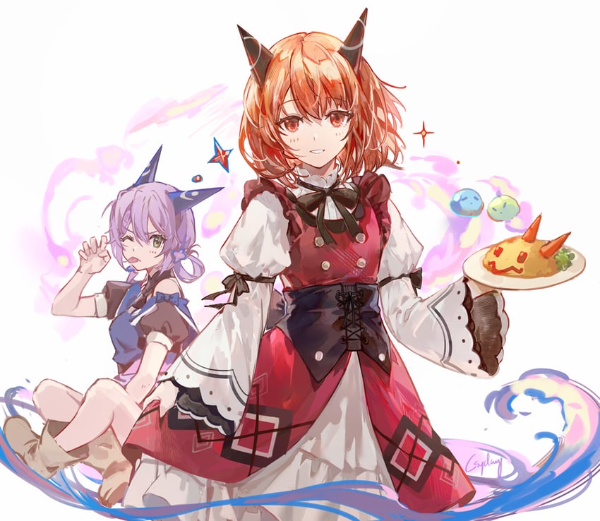 是《打了300年的史莱姆,不知不觉就练到了满级》的红龙莱卡&蓝龙芙拉德露忒(这个名字估计tag都超字数了吧所以还是不打了!